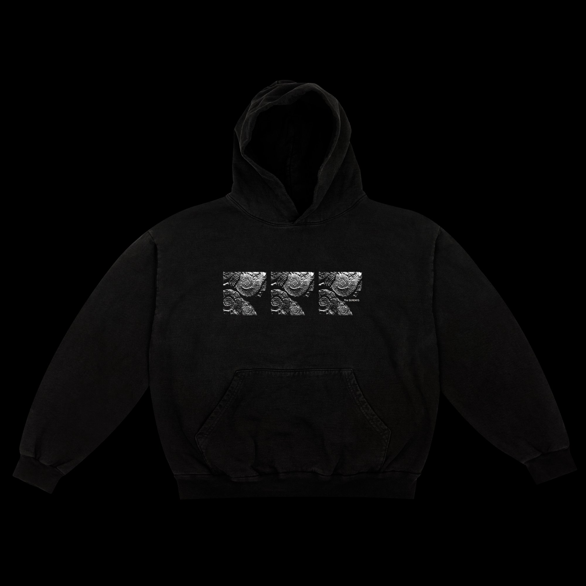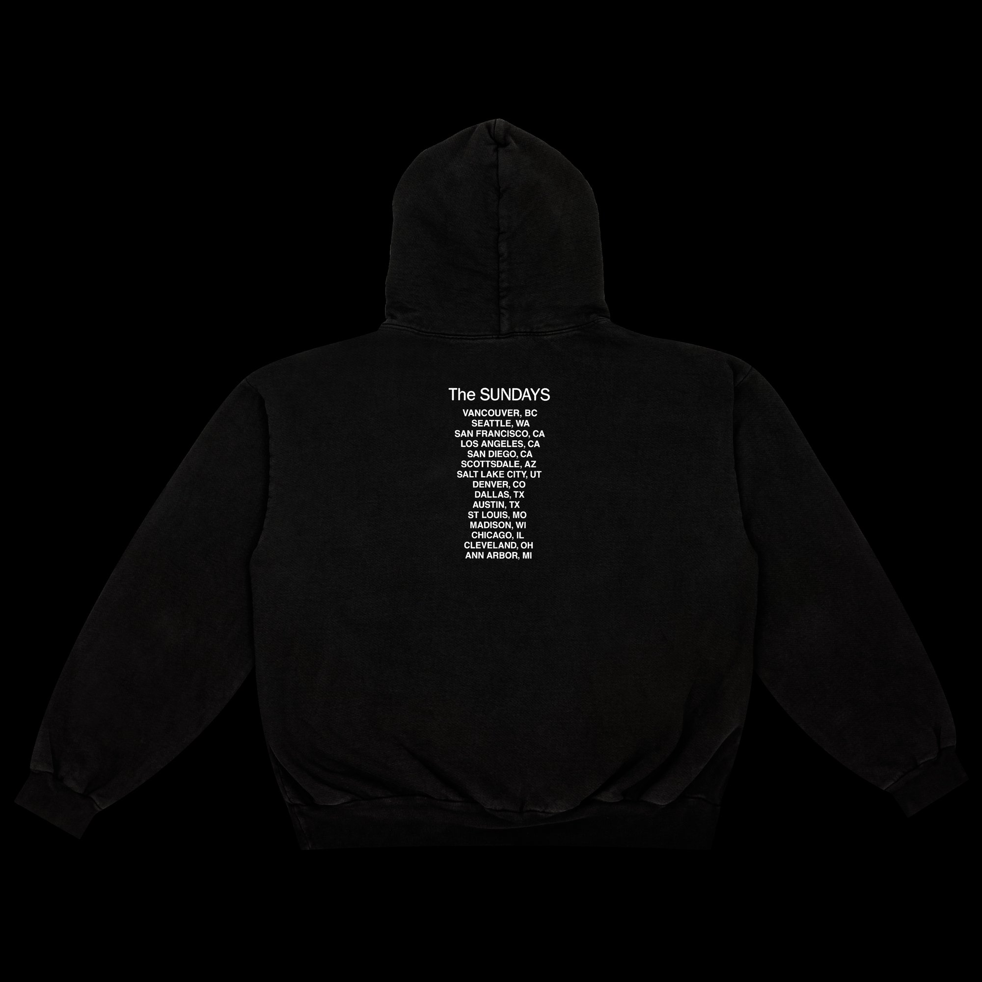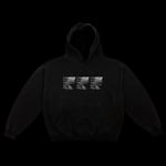 Screen printed on 14 oz. Off Black LAA HF09 hoodies. Knitted, cut, sewn, and dyed in Los Angeles, California.