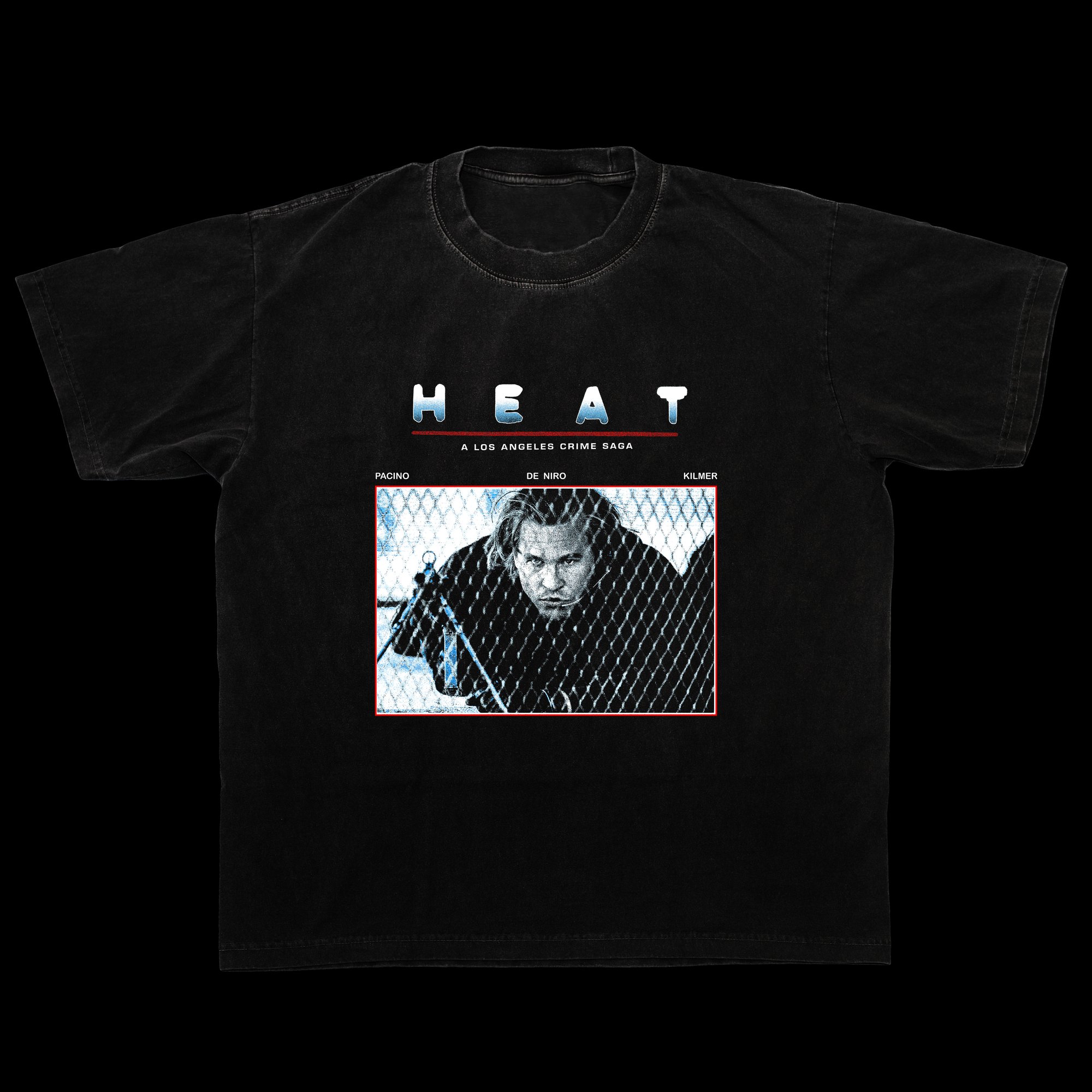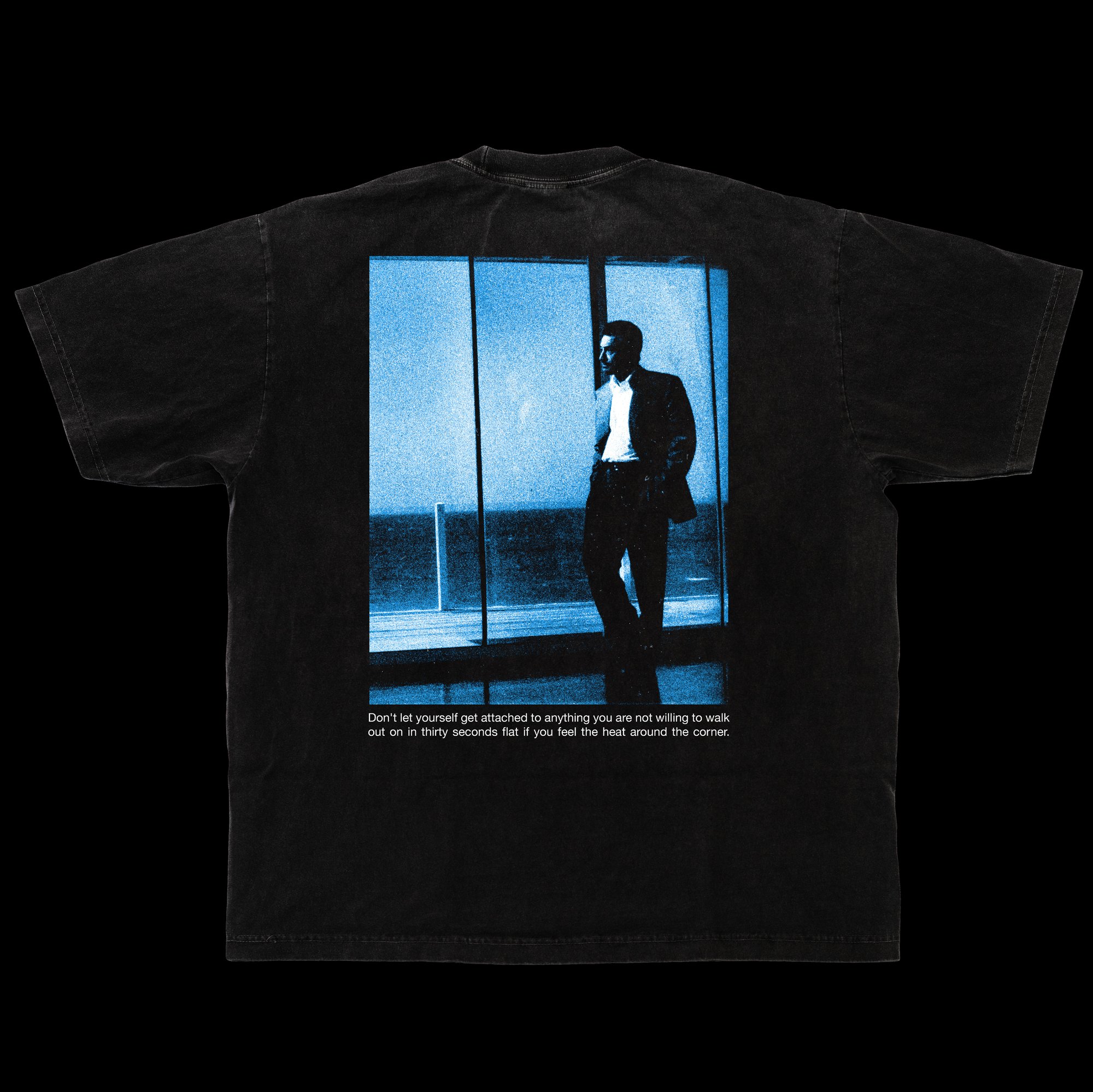Screen printed on 6.5 oz Black Edge 1801 t-shirts. Knitted, cut, sewn, and dyed in Los Angeles, California.